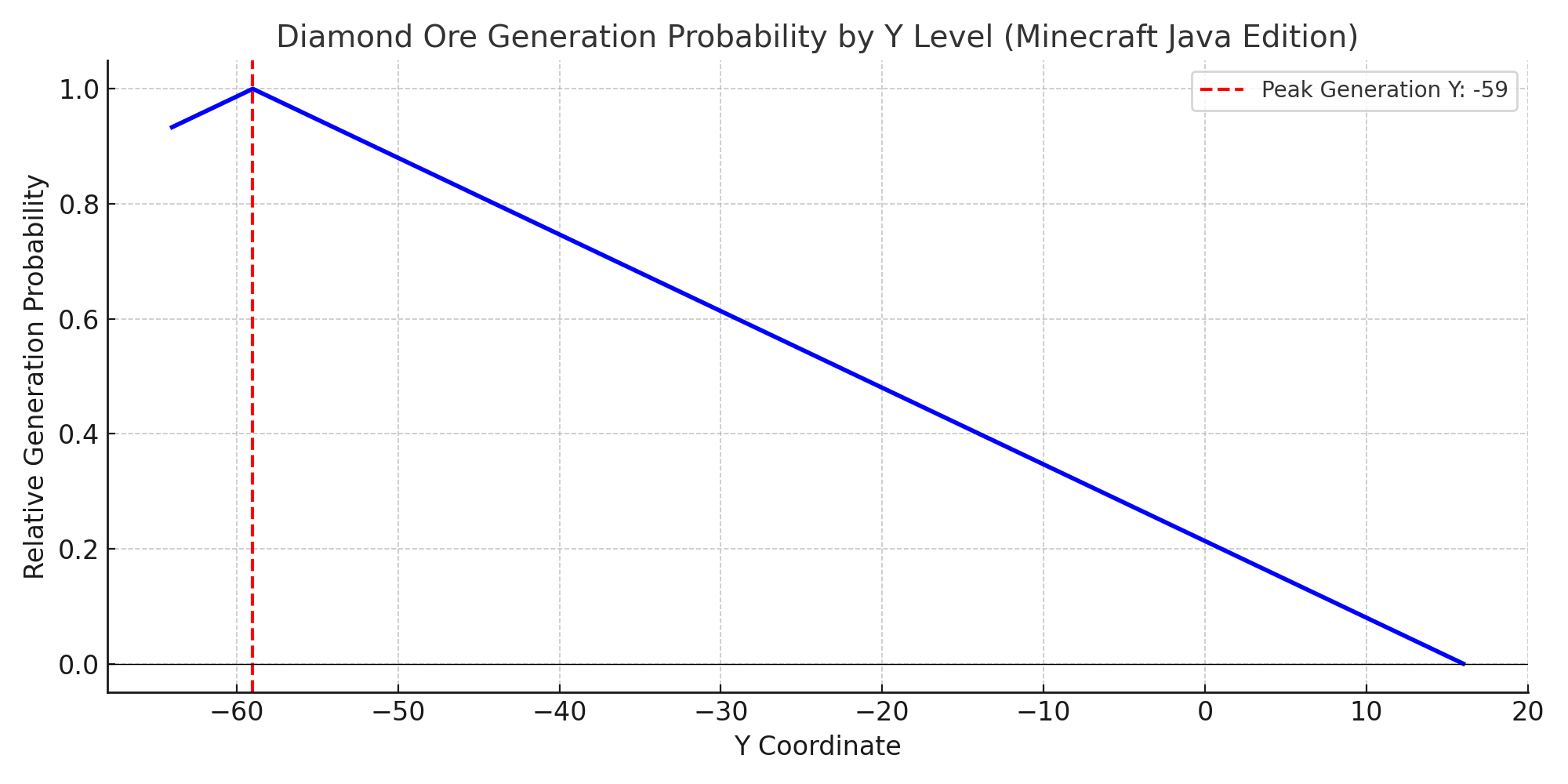 - Y: -64๋ถํฐ Y: 16๊น์ง ์ ์ฐจ ํ๋ฅ ์ด ๋์์ก๋ค๊ฐ ์ค์ด๋ฆ