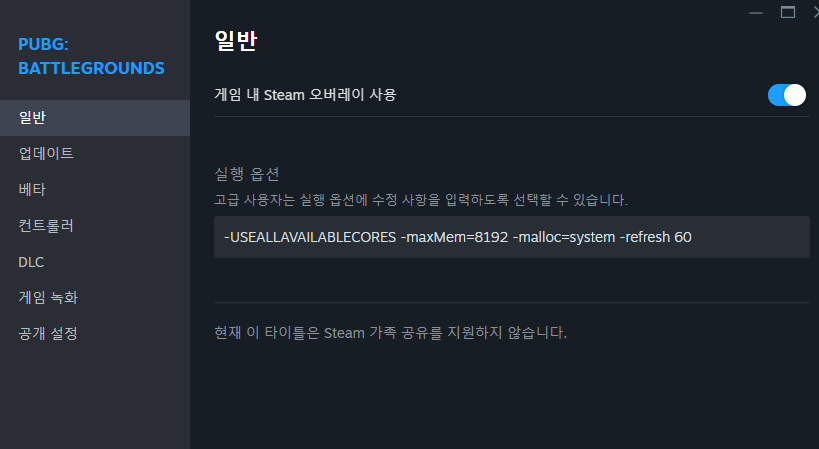 - ์คํ ๋ผ์ด๋ธ๋ฌ๋ฆฌ → PUBG ์ค๋ฅธ์ชฝ ํด๋ฆญ → ์์ฑ
