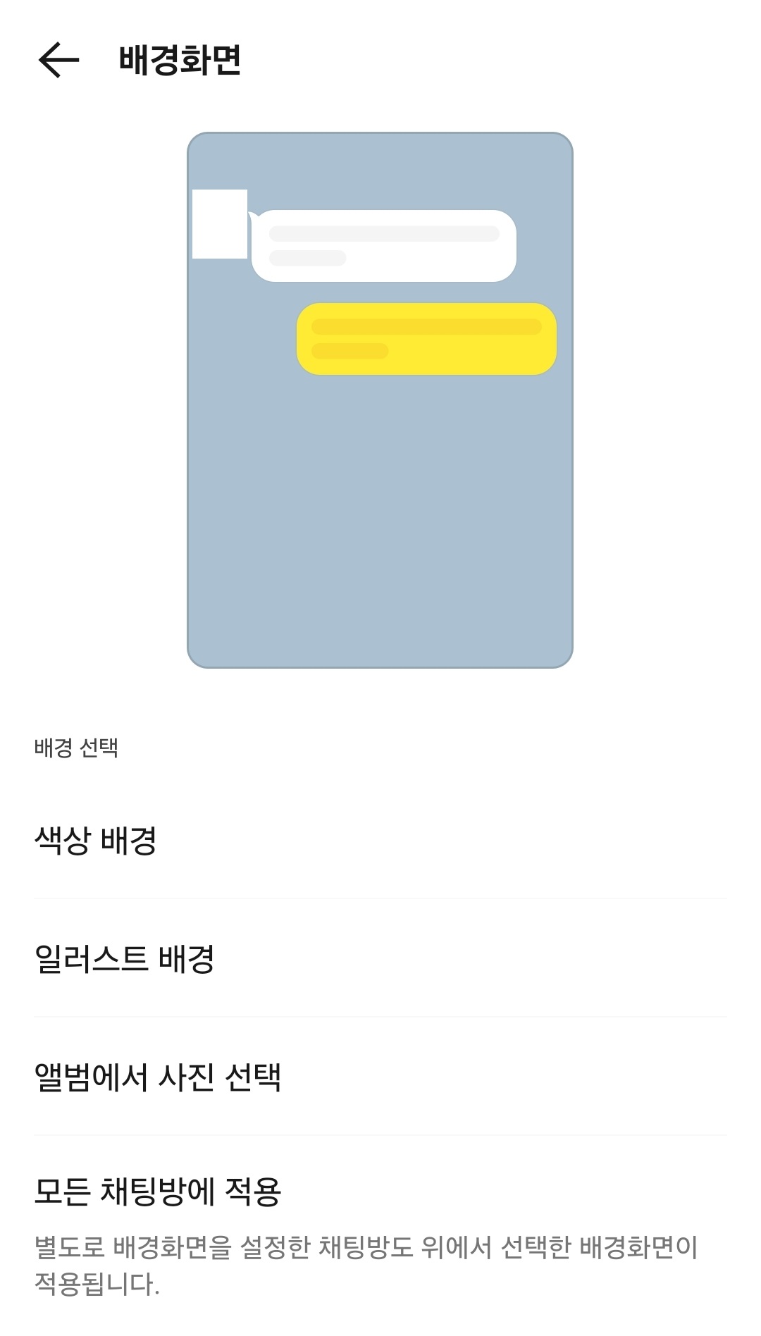 - ‘ํ์ฌ ์ฑํ ๋ฐฉ ๋ฐฐ๊ฒฝํ๋ฉด’ ํญ๋ชฉ ์ ํ
