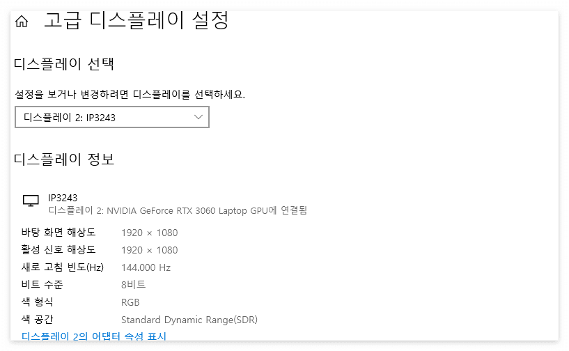 - ๊ณ ๊ธ ๋์คํ๋ ์ด ์ค์ (Advanced Display Settings) ํด๋ฆญ
