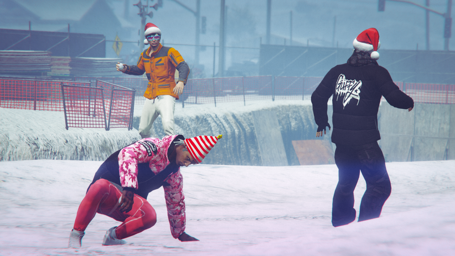 ํฌ๋ฆฌ์ค๋ง์ค๋ฅผ ์๋๊ณ GTA5 ๊ฒจ์ธ ์ ๋ฐ์ดํธ๊ฐ ์งํ ์ค์ผ ๋, ๋ค๊ฐ์ด ๊ฒจ์ธ ๋ณต์ฅ์ ๋ง์ถ๊ณ ๋ค์ํ ํ๋์ ์งํํ์ต๋๋ค. ์๋ก์ ์ฐจ๊ณ ๊ตฌ๊ฒฝ๋ถํฐ ์์ํด์ ์ค์ฐ ๊ตฌ๊ฒฝ์ ์ํ ๋ฑ์ฐ, ๊ทธ๋ฆฌ๊ณ ๋ง๋ฌด๋ฆฌ๋ก ๋ค๊ฐ์ด ๋์ธ์์ ํ๋ฉฐ ๋ค๊ฐ์ด ์ฆ๊ฒผ์ต๋๋ค.