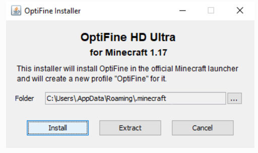 - OptiFine ์ค์น ํ์ผ (.jar)