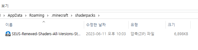 - shaderpacks ํด๋์ .zip ํ์ผ ๋ณต์ฌ