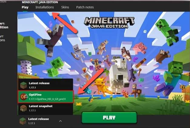 โฃ ๋ง์ธํฌ๋ํํธ ๋ฐ์ฒ์์ OptiFine ์คํ